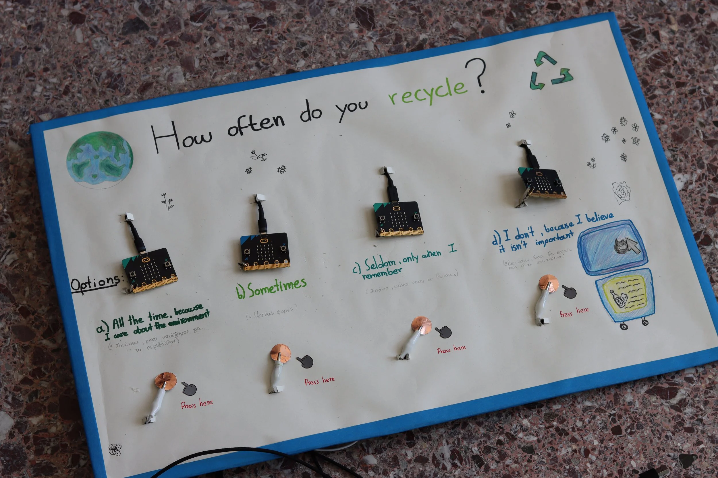 We collaborated with scientists, designers and artists to develop a library of workshops that need very little resources and can be easily run by educators in a school environment. Through hands-on practical workshops, students can explore circular futures in their own context making wind turbines, environmental data sensors, upcycled objects and shelters for animals.